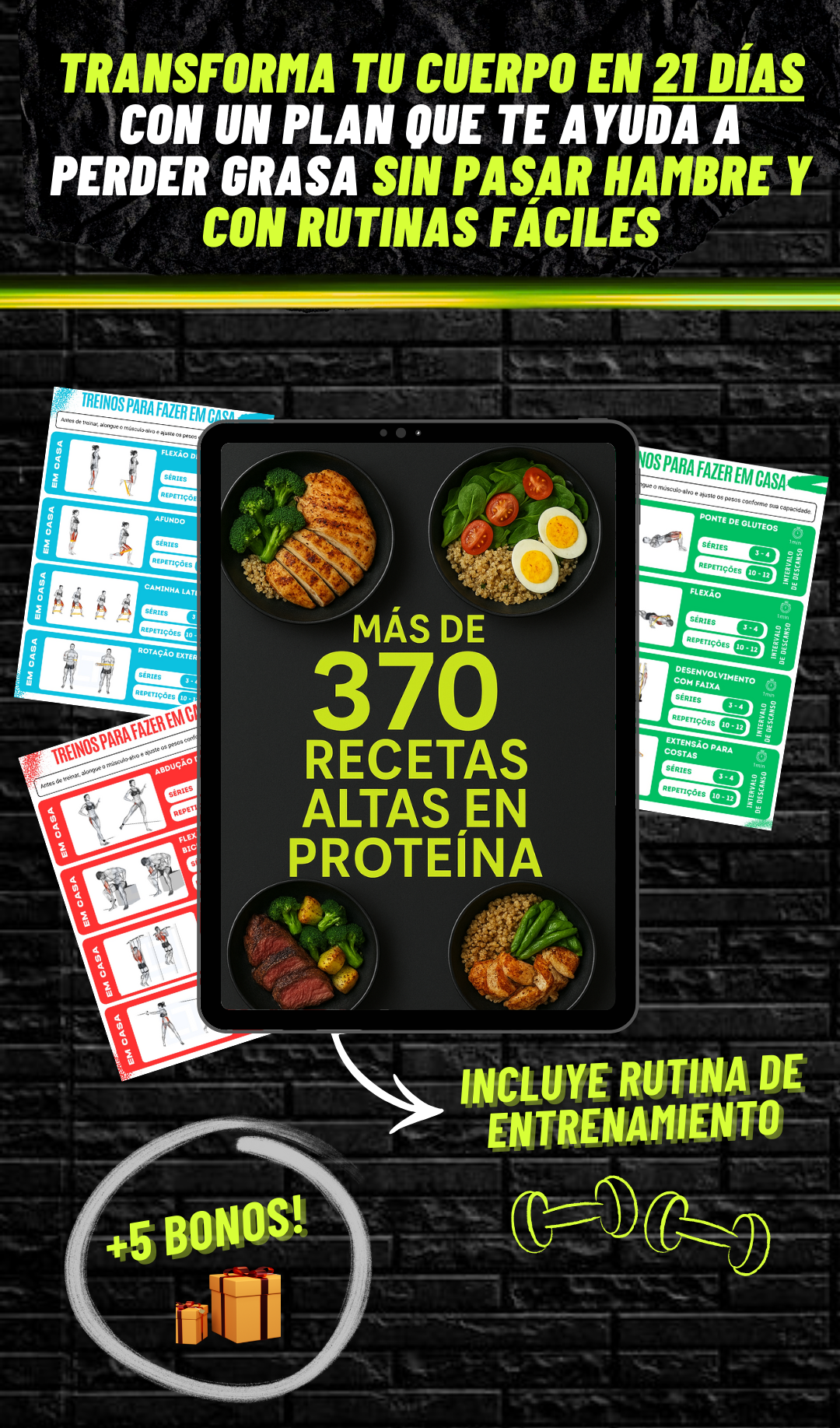 📖 370 recetas fitness altas en proteínas + Planillas de Ejercicios.